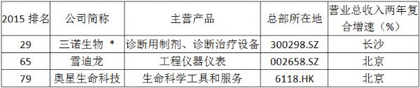 其中,雪迪龍、三諾生物、奧星生命科技等3家儀器/耗材制造商入圍2015福布斯中國(guó)上市潛力企業(yè)100強(qiáng)。