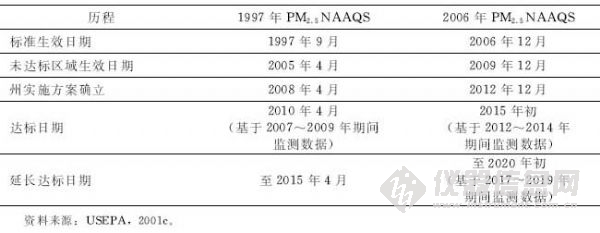 美國(guó)為達(dá)到PM2.5排放標(biāo)準(zhǔn)而制定的實(shí)施進(jìn)度