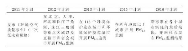 我國(guó)PM2.5環(huán)境空氣質(zhì)量標(biāo)準(zhǔn)的實(shí)施計(jì)劃