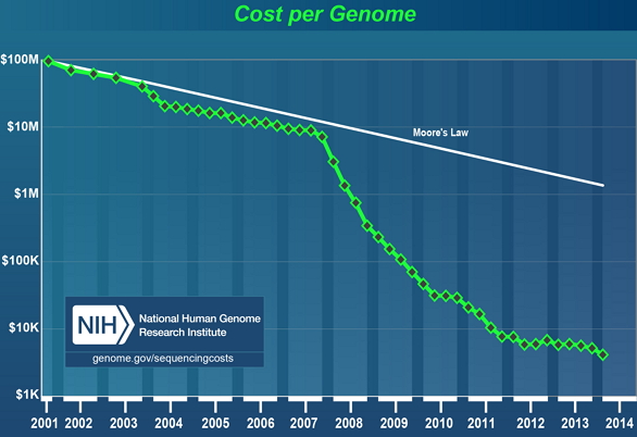 Personal genomics的成本正在逐年下降