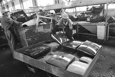 記者在百盛公司看到,公司有生產(chǎn)車間、原料倉庫和儲存危險品的倉庫,生產(chǎn)車間有4條生產(chǎn)線,分類處理廢舊洗衣機、電視機、冰箱、空調(diào)、電路板等。