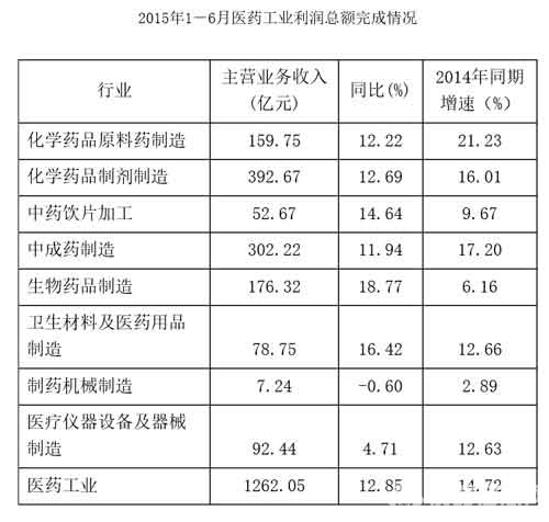 數(shù)據(jù)顯示,2015年1-6月,規(guī)模以上醫(yī)藥工業(yè)增加值同比增長(zhǎng)9.9%,增速較上年同期下降3.6個(gè)百分點(diǎn),較一季度環(huán)比下降1.2個(gè)百分點(diǎn),較全國(guó)規(guī)模以上工業(yè)增加值增速(6.3%)高3.6個(gè)百分點(diǎn)。
