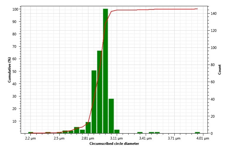 直徑 3 μm 的 PS 聚苯乙烯小球統(tǒng)計(jì)結(jié)果