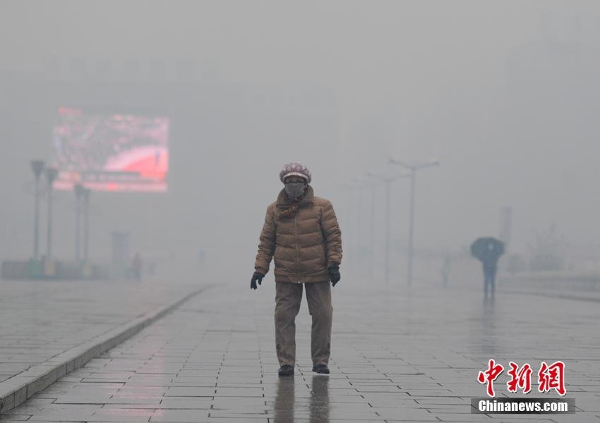 記者在沈陽市內(nèi)街頭采訪看到,城區(qū)被灰白色的煙霾籠罩,能見度不足百米。隨著時(shí)間推移,霧霾不斷加重,街頭車輛行駛緩慢,行人則大都佩戴著口罩,行色匆匆。