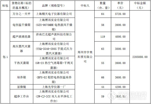 11月9日,河南省水利廳2015年第二批農(nóng)水安全工程(河南省農(nóng)村飲水安全區(qū)域水質(zhì)檢測(cè)中心儀器設(shè)備采購(gòu))中標(biāo)結(jié)果公布,本次采購(gòu)儀器設(shè)備高達(dá)1168套,中標(biāo)總額為5446萬(wàn)元。
