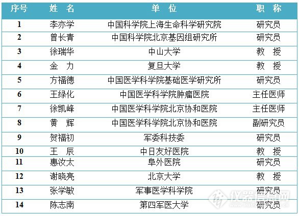 “精準(zhǔn)醫(yī)學(xué)研究”重點(diǎn)專項2016年項目指南編制專家名單