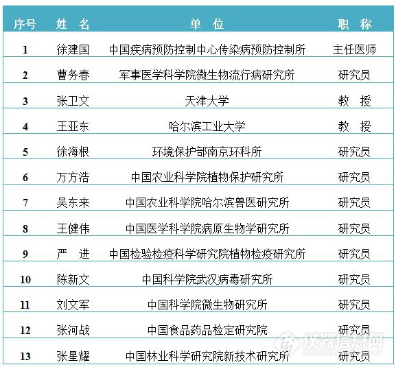 “生物安全關鍵技術研發(fā)”重點專項2016年項目指南編制專家名單