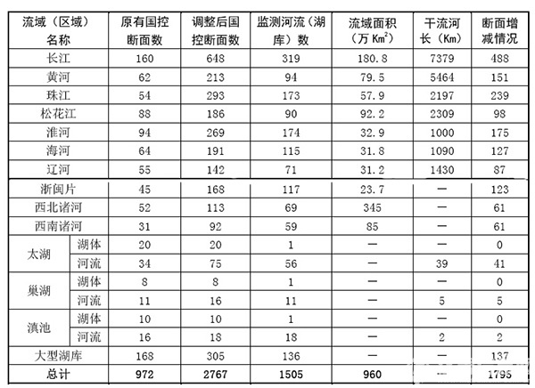 國控地表水環(huán)境質(zhì)量監(jiān)測網(wǎng)點位分布情況表