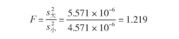 t檢驗應(yīng)用的前提是兩組數(shù)據(jù)的標(biāo)準(zhǔn)偏差沒有顯著性差異, 即兩組數(shù)據(jù)是等精度的。根據(jù)F檢驗的計算公式得