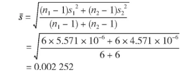 取95%置信概率, 則α=0.05;又兩組數(shù)據(jù)的測量次數(shù)均為7次, 即n1=n2=7, 則f1=f2=7-1=6。查表得Fα, f1, f2=F0.05, 6, 6=4.28, 則F