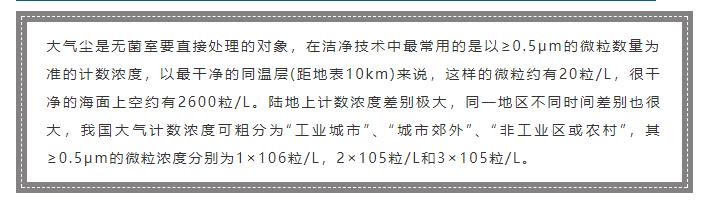 大氣塵的污染屬于無生命微粒的污染,而大氣菌的污染屬于有生命微粒的污染。微生物包括:病毒、立克次體、細(xì)菌、菌類、原生蟲類。但和潔凈室有關(guān)的主要是細(xì)菌和菌類。但是細(xì)菌不能單獨生存,一般都附著在塵粒上面,所以有意義的大小是其等價直徑,一群帶菌微粒通過過濾器時,細(xì)菌的過濾效率和某粒徑的微粒的效率一樣,則這一粒徑就是這群帶菌微粒的等價直徑。