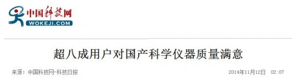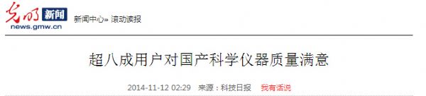 近日,科技日報一則題為《超八成用戶對國產(chǎn)科學儀器質(zhì)量滿意》的新聞被人民網(wǎng)、光明網(wǎng)、中國日報、中國經(jīng)濟網(wǎng)、中國江蘇網(wǎng)、天津網(wǎng)、和訊科技等知名媒體紛紛轉(zhuǎn)發(fā),引起了社會各界對國產(chǎn)儀器質(zhì)量滿意度的廣泛關(guān)注。