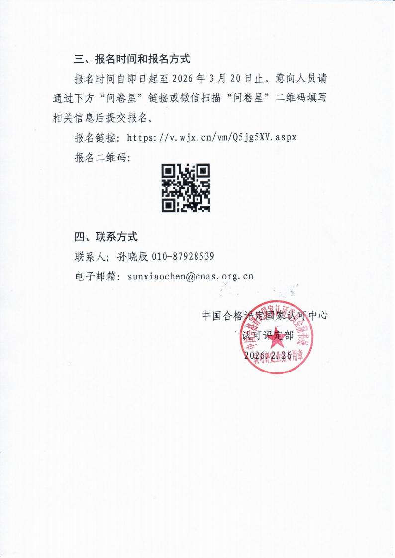 為加強認可評定隊伍建設,中國合格評定國家認可中心認可評定部征集評定技術(shù)專家,符合條件的意向人員可于2026年3月20日前填寫報名表。