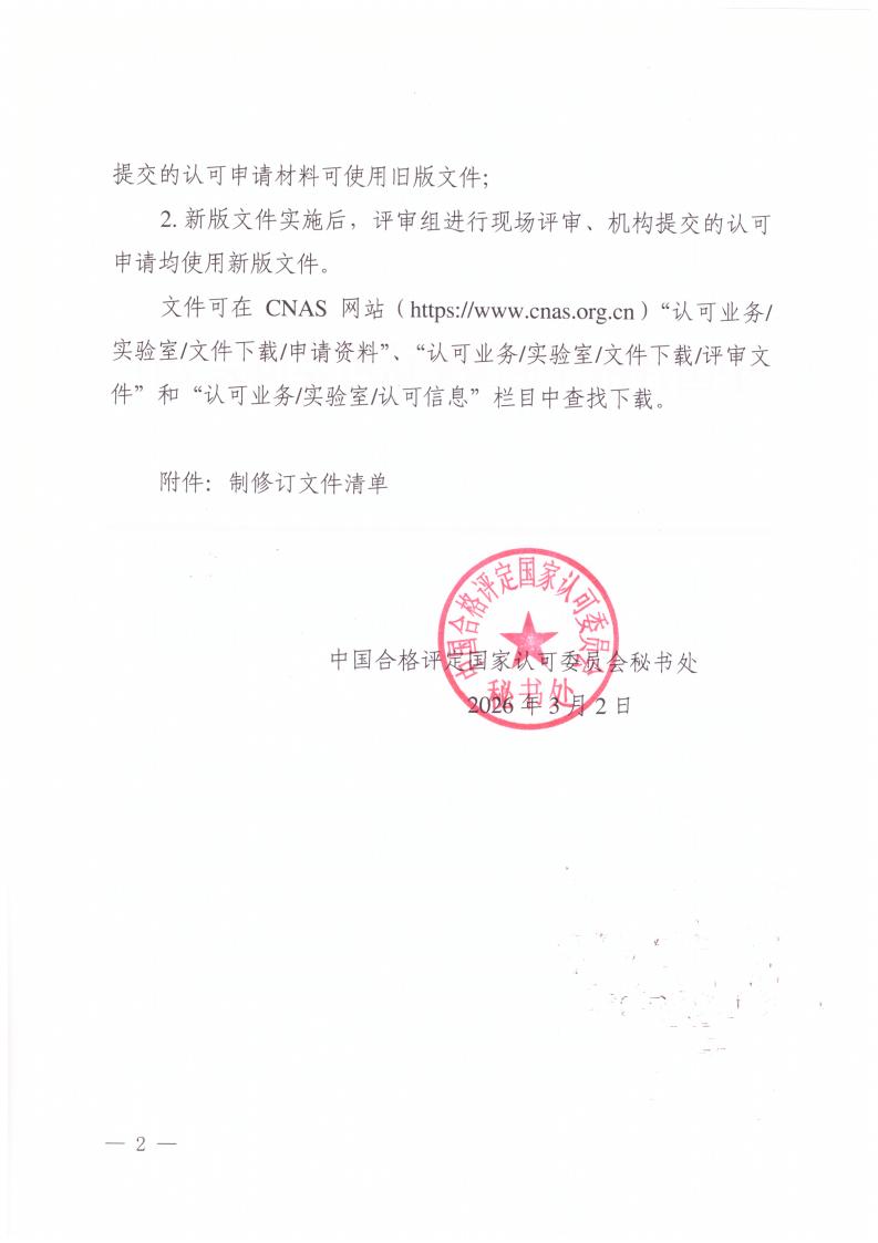 中國(guó)合格評(píng)定國(guó)家認(rèn)可委員會(huì)(CNAS)秘書處已完成 CNAS-AL21:20260228《生物樣本庫(kù)質(zhì)量和能力認(rèn)可申請(qǐng)書》, CNAS-PD14-23 D1《生物樣本庫(kù)質(zhì)量和能力認(rèn)可評(píng)審報(bào)告》等5份文件(含附表附件,清單見附件)的制修訂工作。以上文件是 CNAS根據(jù)生物樣本庫(kù)認(rèn)可實(shí)踐過程中經(jīng)驗(yàn)的積累和認(rèn)可過程中遇到的問題,為適應(yīng)生物樣本庫(kù)認(rèn)可工作需要進(jìn)行制修訂。