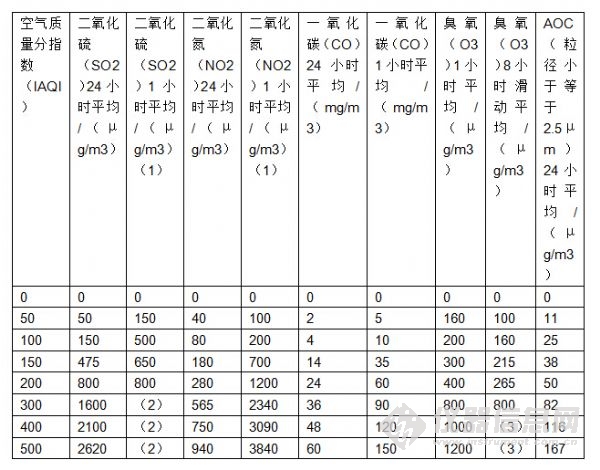 對(duì)AQI的所有計(jì)算公式不變.(詳見HJ 633—2012),標(biāo)重部分為新設(shè)數(shù)值,并去除了PM10部分