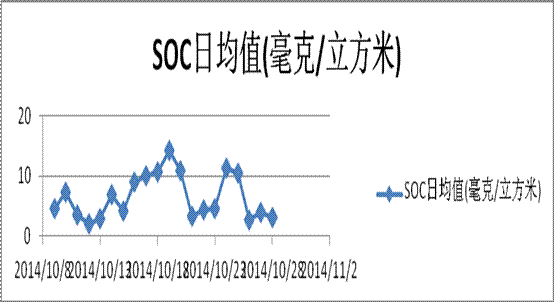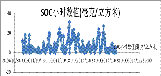 從以上三個(gè)圖譜及數(shù)據(jù)可以看出:重污染時(shí)SOC數(shù)據(jù)也是在小時(shí)區(qū)間內(nèi)發(fā)生很大變化的,小時(shí)級(jí)的數(shù)據(jù)監(jiān)測(cè)可以精準(zhǔn)研判污染的程度;而日均的數(shù)據(jù)可以使污染的趨勢(shì)更容易被解讀。