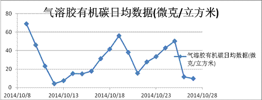 圖二的小時(shí)氣溶膠有機(jī)碳數(shù)據(jù)則清晰揭示了從10月9日-10月28日污染的波動(dòng)情況。