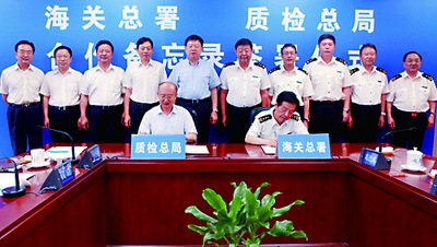 2014年7月17日,國(guó)家質(zhì)檢總局與海關(guān)總署在京簽署了《關(guān)于深化關(guān)檢協(xié)作共同促進(jìn)外貿(mào)穩(wěn)定增長(zhǎng)合作備忘錄》(簡(jiǎn)稱(chēng)《備忘錄》)。質(zhì)檢總局局長(zhǎng)支樹(shù)平、海關(guān)總署署長(zhǎng)于廣洲為會(huì)議致辭,并代表合作雙方簽署了《備忘錄》。