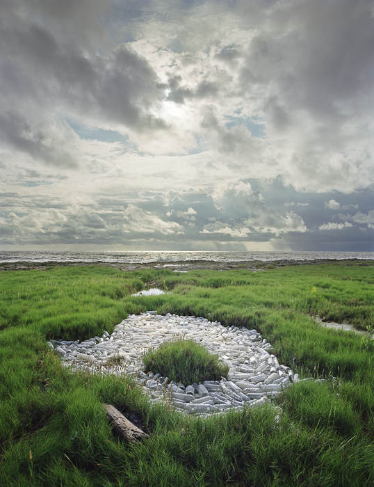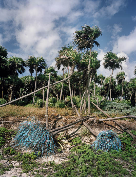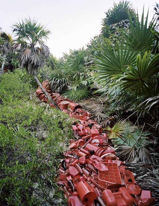 他的藝術(shù)項(xiàng)目“Washed Up: Transforming a Trashed Landscape”目前還在創(chuàng)作中,該項(xiàng)目以墨西哥最大的聯(lián)邦自然保護(hù)區(qū)圣卡安清麗的美景為背景,襯托出五顏六色又讓人看了心里不安的塑料垃圾(他從全世界收集來的)。