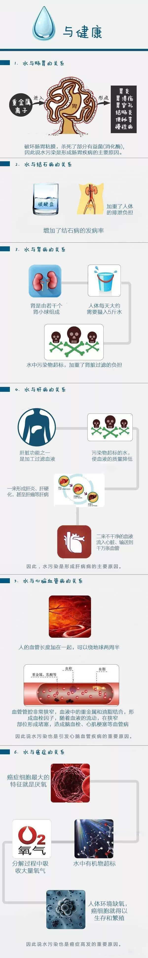 日常生活的方方面面都離不開水,據(jù)世界衛(wèi)生組織調(diào)查,人類所患疾病的80%與水有關(guān),水質(zhì)不良可引起多種疾病。那么,你知道水與日益增長的細(xì)菌、病毒、疾病有什么聯(lián)系嗎?請看下面圖解,讓你清楚了解你的體內(nèi)器官正經(jīng)受著怎樣的折磨!