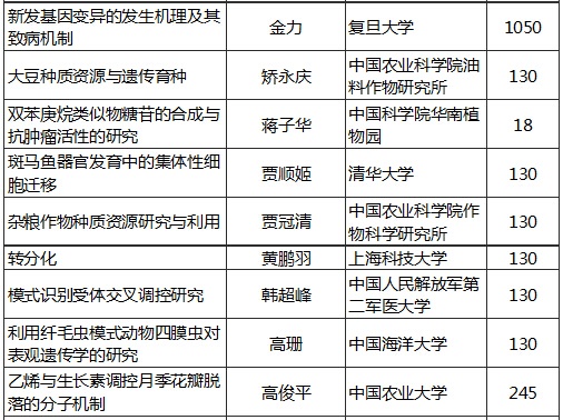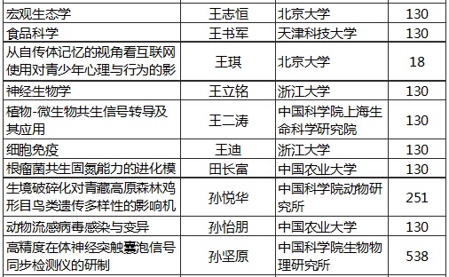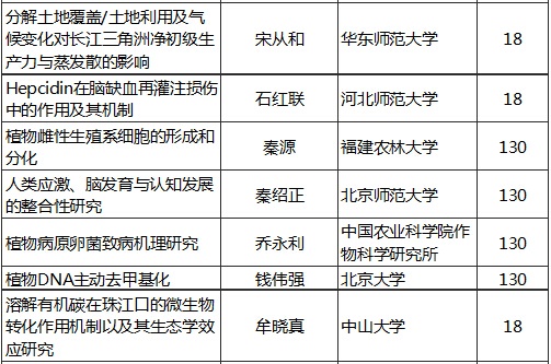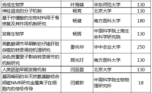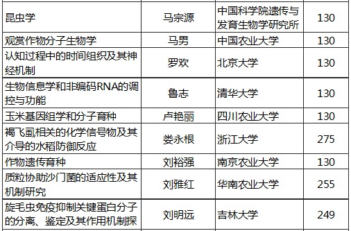 2015年國家自然科學(xué)基金優(yōu)秀青年基金資助名單(生命科學(xué))