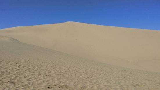西北的沙漠早有聽(tīng)聞,月牙泉這首歌曲也早就耳聞,終于到了沙漠卻又是別有一番體會(huì),看著不高的沙山爬起來(lái)真是不比爬樓,上一步退半步,雖然艱難但是努力了,爬到山頂也不是什么困難,這就好比生活中一樣,不管多么艱辛多么困難,只要每天能夠進(jìn)步一點(diǎn)點(diǎn),目標(biāo)終究能夠?qū)崿F(xiàn)。其實(shí)怎么我也不相信沙漠中會(huì)有水,而且是一眼清泉,不得不佩服這造物,總是能給我們一種意想不到的驚喜,一種柳暗花明又一村的感覺(jué)。