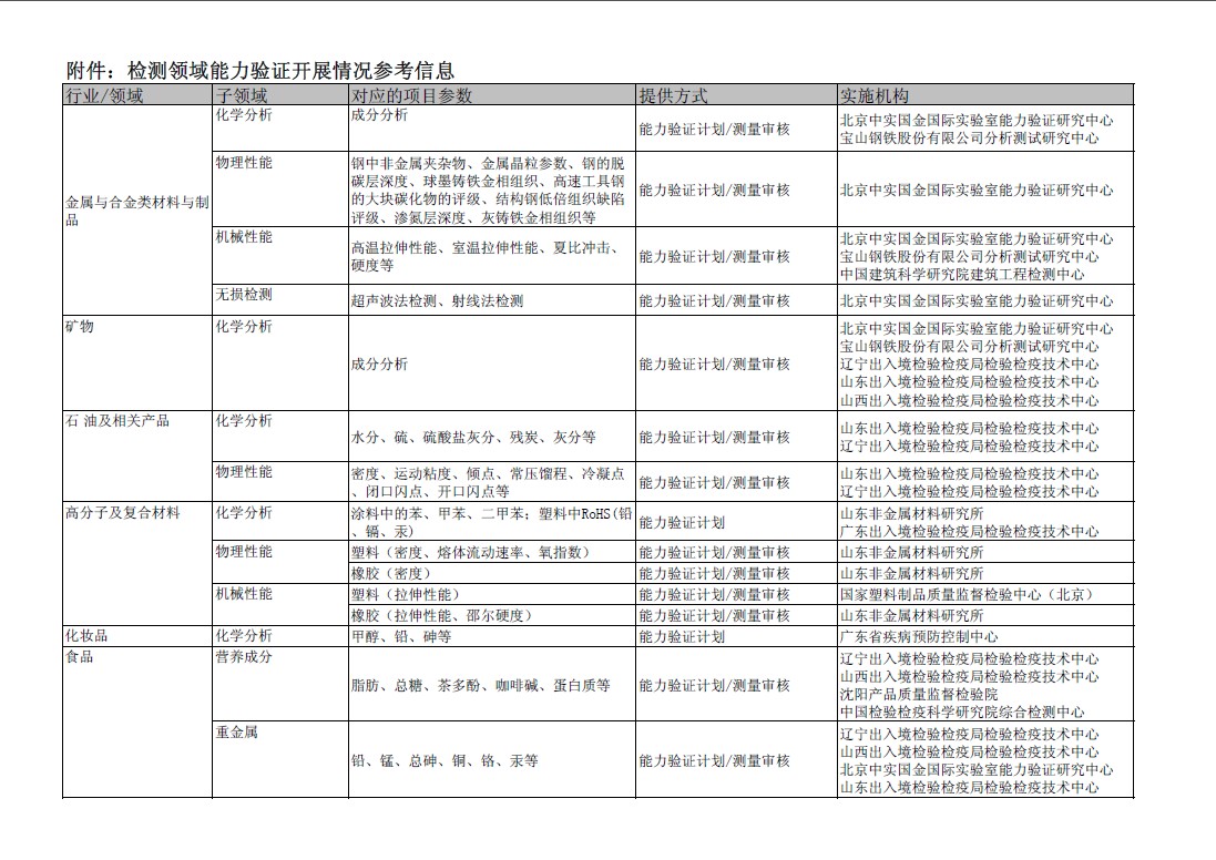 附件:檢測(cè)領(lǐng)域能力驗(yàn)證開(kāi)展情況參考信息