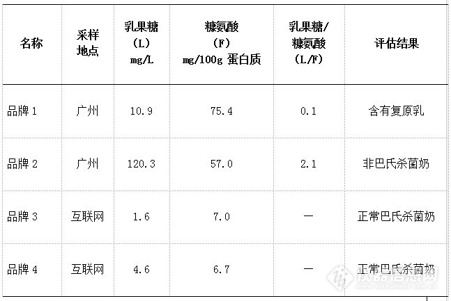 進(jìn)口品牌巴氏殺菌奶中乳果糖與糠氨酸含量