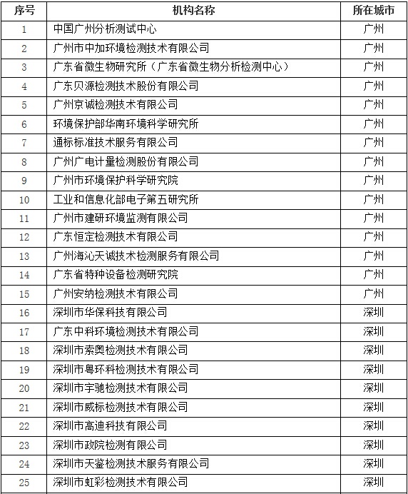 廣東省環(huán)境保護廳官方網(wǎng)站近日對政府購買環(huán)境檢測服務(wù)機構(gòu)名單(第一批)進行了公示,共有53家檢測機構(gòu)進入名單。其中,綜合類機構(gòu)37家、氣專項機構(gòu)6家、水專項機構(gòu)5家、固體專項機構(gòu)5家(詳細名單見后文)。