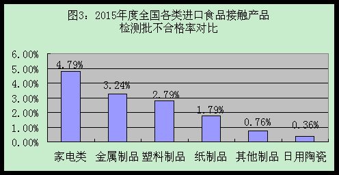 5月17日,質(zhì)檢總局公布《2015年度全國(guó)進(jìn)口食品接觸產(chǎn)品質(zhì)量狀況》(以下簡(jiǎn)稱(chēng)白皮書(shū))。白皮書(shū)顯示,2015年全國(guó)檢驗(yàn)檢疫機(jī)構(gòu)共計(jì)檢驗(yàn)檢出不合格進(jìn)口食品接觸產(chǎn)品8331批,批次檢驗(yàn)不合格率為7.71%,不合格率達(dá)五年來(lái)最高;不合格原因主要是標(biāo)識(shí)標(biāo)簽、安全衛(wèi)生項(xiàng)目及其他項(xiàng)目檢驗(yàn)不合格。