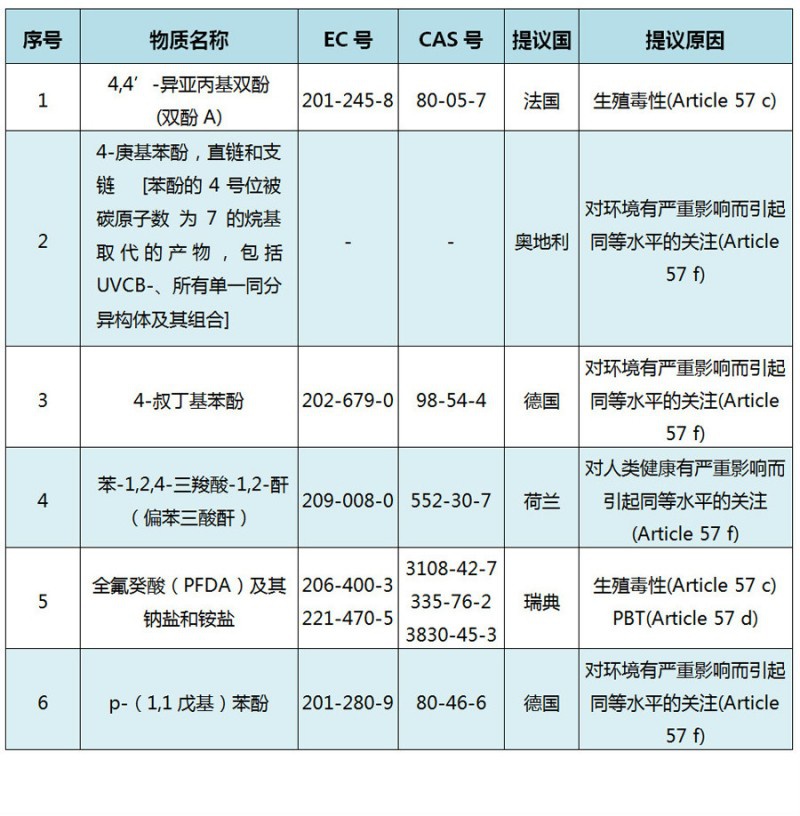 2016年9月6日,歐洲化學(xué)品管理局(ECHA)將6種物質(zhì)列入第16批高度關(guān)注物質(zhì)(SVHC)清單征詢公眾意見。公眾可就這些物質(zhì)的特性用途、暴露程度、替代品以及風(fēng)險(xiǎn)發(fā)表意見。此次公眾意見征詢將于2016年10月21日結(jié)束。