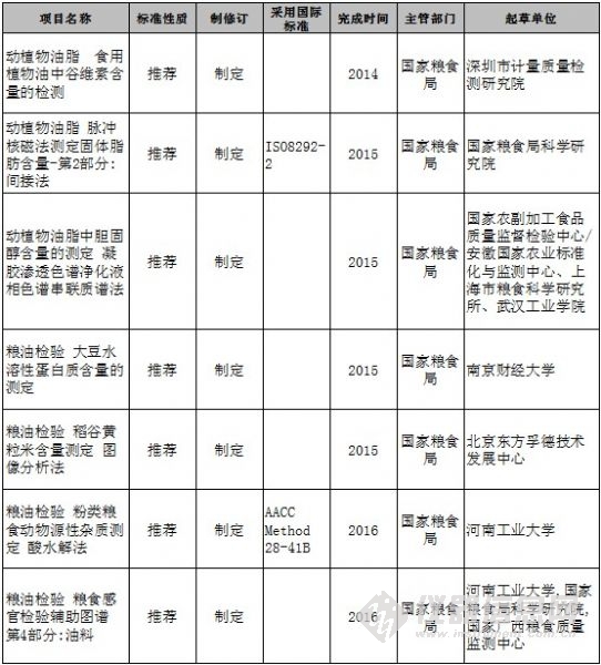 2014年第一批國家標準制修訂計劃 動植物油脂、糧油檢驗標準