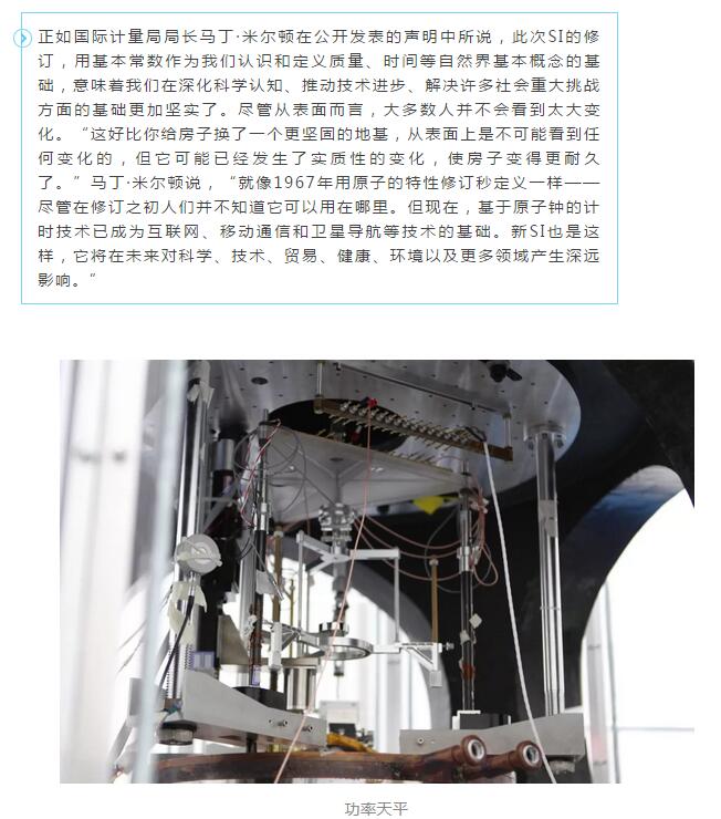 這是國際測量體系有史以來第一次全部建立在不變的常數(shù)上,保證了SI的長期穩(wěn)定性和環(huán)宇通用性。就像1967年秒定義的修訂使我們在今天擁有了GPS和互聯(lián)網(wǎng)技術(shù)一樣,新SI將在未來對科學(xué)、技術(shù)、貿(mào)易、健康、環(huán)境以及更多領(lǐng)域產(chǎn)生深遠(yuǎn)影響。可以說,SI的修訂是科學(xué)進(jìn)步的一座里程碑。