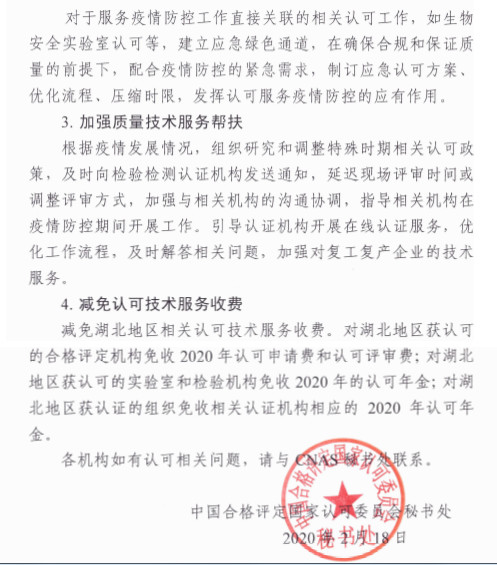 CNAS發(fā)文:?減免湖北地區(qū)相關(guān)認(rèn)可技術(shù)服務(wù)收費(fèi)