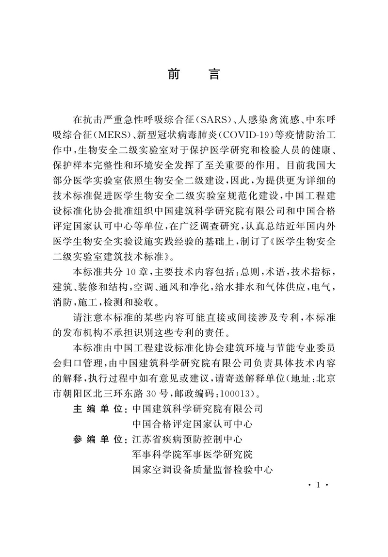 中國建筑科學(xué)研究院有限公司長期以來,在工程建設(shè)技術(shù)標(biāo)準(zhǔn)和規(guī)范編制與管理方面具有強(qiáng)大的優(yōu)勢(shì),發(fā)揮著領(lǐng)軍作用。曾先后主編了《生物安全實(shí)驗(yàn)室建筑技術(shù)規(guī)范》GB 50346、《傳染病醫(yī)院建筑施工及驗(yàn)收規(guī)范》GB 50686、《醫(yī)院潔凈手術(shù)部建筑技術(shù)規(guī)范》GB 50333、《潔凈室施工及驗(yàn)收規(guī)范》GB 50591等相關(guān)領(lǐng)域重要規(guī)范,多次主持或參加國家相關(guān)領(lǐng)域重點(diǎn)研究項(xiàng)目。所屬“建筑環(huán)境與能源研究院”在建筑室內(nèi)環(huán)境和實(shí)驗(yàn)室生物安全控制領(lǐng)域一直處于領(lǐng)先地位,尤其是凈化空調(diào)技術(shù)中心在生物安全、室內(nèi)環(huán)境控制領(lǐng)域有幾十年的技術(shù)積累。同為主編單位的中國合格評(píng)定國家認(rèn)可中心從2004年開始,依據(jù)國務(wù)院424 令對(duì)高級(jí)別生物安全實(shí)驗(yàn)室開展認(rèn)可工作,同時(shí)積累總結(jié)了大量醫(yī)學(xué)實(shí)驗(yàn)室的認(rèn)可經(jīng)驗(yàn)和使用需求。疫情防控當(dāng)前,中國建筑科學(xué)研究院有限公司勇?lián)?/span>央企重任,完成了CECS662標(biāo)準(zhǔn)——《醫(yī)學(xué)生物安全二級(jí)實(shí)驗(yàn)室建筑技術(shù)標(biāo)準(zhǔn)》編制工作,為當(dāng)前疫情條件下的醫(yī)學(xué)生物安全二級(jí)實(shí)驗(yàn)室的規(guī)劃、設(shè)計(jì)、新改擴(kuò)建、驗(yàn)收等具有重要指導(dǎo)意義,為疫情防控一線的生物安全保障提供技術(shù)支撐。
