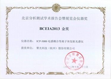 ICP-5000在2013年5月14日舉辦的中國分析測試協(xié)會的專家鑒定會上,得到了專家們的一致認(rèn)可,均稱贊此產(chǎn)品已經(jīng)達(dá)到國際同類產(chǎn)品先進(jìn)水平,在2013年10月舉辦的BECIA展會和2014年5月舉辦的CISILE展會均得到金獎,在2014年9月MICONEX展會上,獲得科技成果獎;