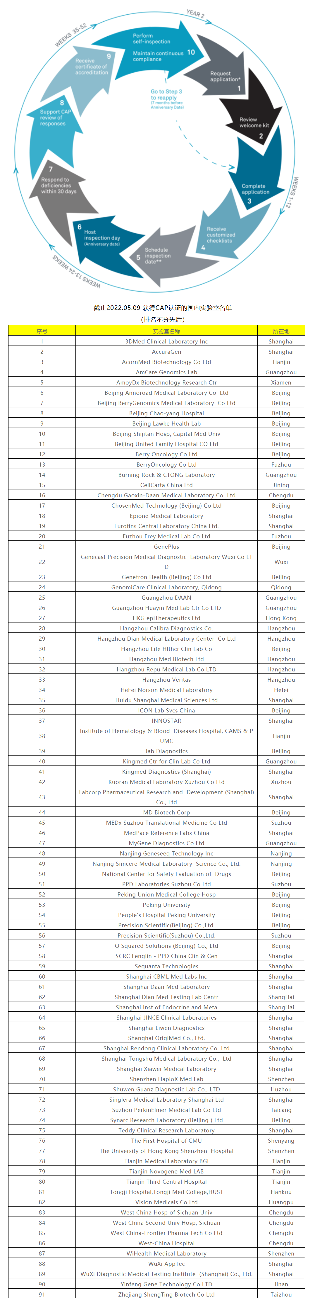 截止2022年05月09日,國內(nèi)共有91家實驗室獲得CAP認(rèn)證。