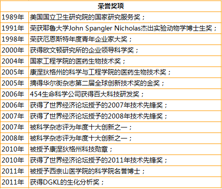 Jonathan Rothberg 歷來榮譽獎項: