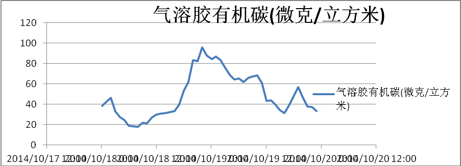 從圖一的數(shù)據(jù)可以看出:10月18日出現(xiàn)的峰值數(shù)據(jù)有一個(gè)小時(shí)的氣溶膠有機(jī)碳在90-100微克/立方米,而在80-90微克/立方米的氣溶膠有機(jī)碳數(shù)據(jù)有6個(gè)小時(shí),這或許提示我們:連續(xù)監(jiān)測(cè)氣溶膠的小時(shí)數(shù)據(jù)是揭示大氣污染的真實(shí)狀況的一個(gè)重要手段。