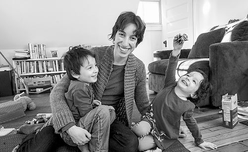 Jennifer Couzin-Frankel與兩個(gè)孩子正在做游戲。和很多人一樣,她希望在孩子成長(zhǎng)過(guò)程中,通過(guò)基因檢測(cè)在某種程度上保護(hù)家人的健康。圖片來(lái)源:APRIL SAUL