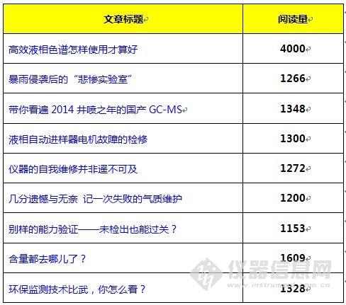 第七屆科學(xué)儀器網(wǎng)絡(luò)原創(chuàng)作品大獎(jiǎng)賽(以下簡(jiǎn)稱:原創(chuàng)大賽)7月1日火熱開賽,開賽以來大賽受到全國(guó)各地網(wǎng)友、科學(xué)儀器行業(yè)工作者地積極響應(yīng)與熱情參與,截至目前共征集到近800篇原創(chuàng)作品,其中也涌現(xiàn)出很多優(yōu)秀的原創(chuàng)文章。此外,本屆原創(chuàng)大賽還首次運(yùn)用微信平臺(tái)對(duì)原創(chuàng)文章進(jìn)行了分享,11月期間共推送了16篇文章,瀏覽量20000余次。具體推送及獲獎(jiǎng)文章請(qǐng)見下表: